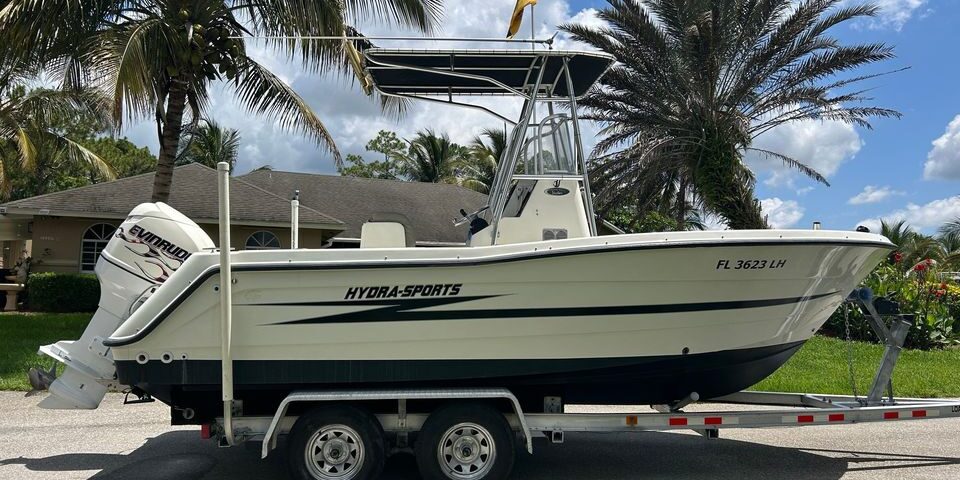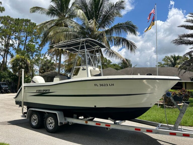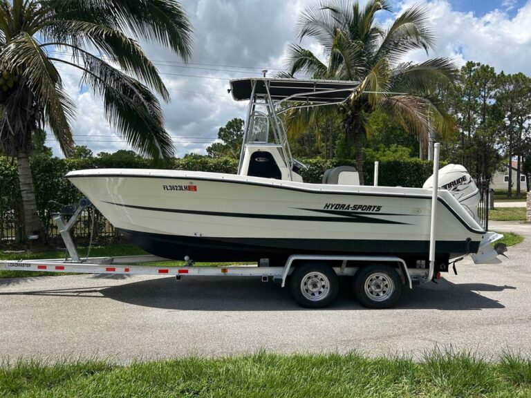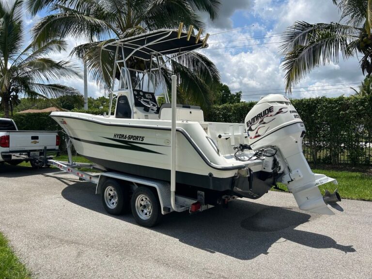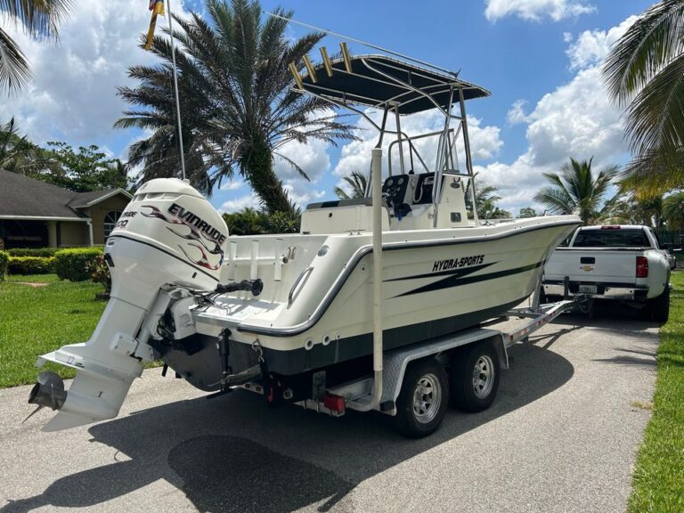 2000 Hydra-Sports Vector 2000CC Evinrude 200 hp 2-Stroke 680 hrs, excellent condition one owner 21′ Center Console fishing boat, starts and runs great, everything works as it should, includes T-top, Bluetooth marine sound system, Raymarine GPS FishFinder, VHF radio, Trim Tabs, Live well, port-a-potty, LED courtesy lights, anchor, fenders, life vests, flares, fire extinguisher, Optional Load Master aluminum boat trailer shown in pictures is available for additional $2,800 if needed $15,800 or $18,600 with Trailer.