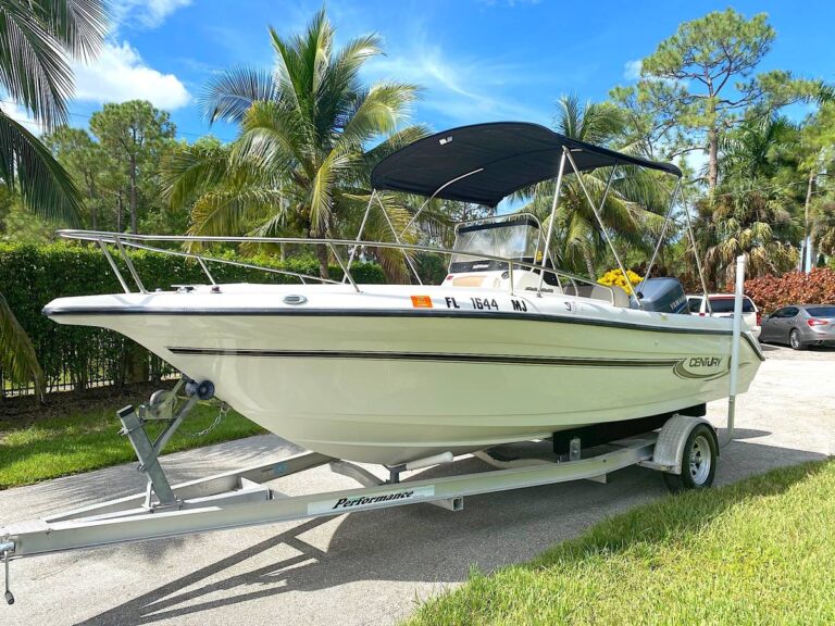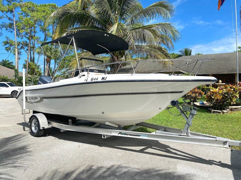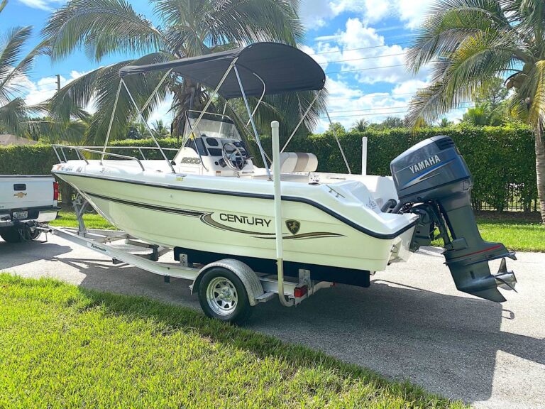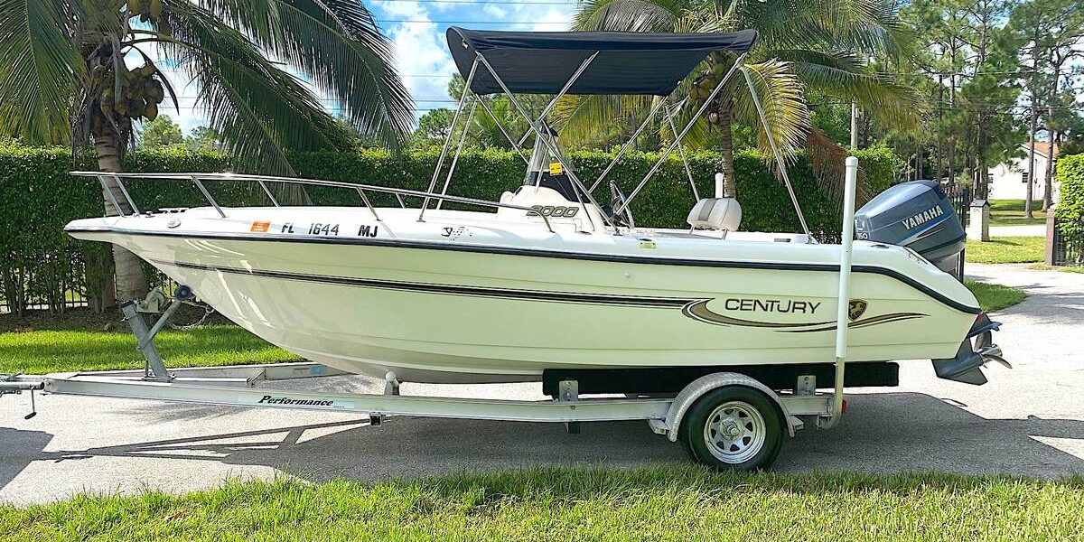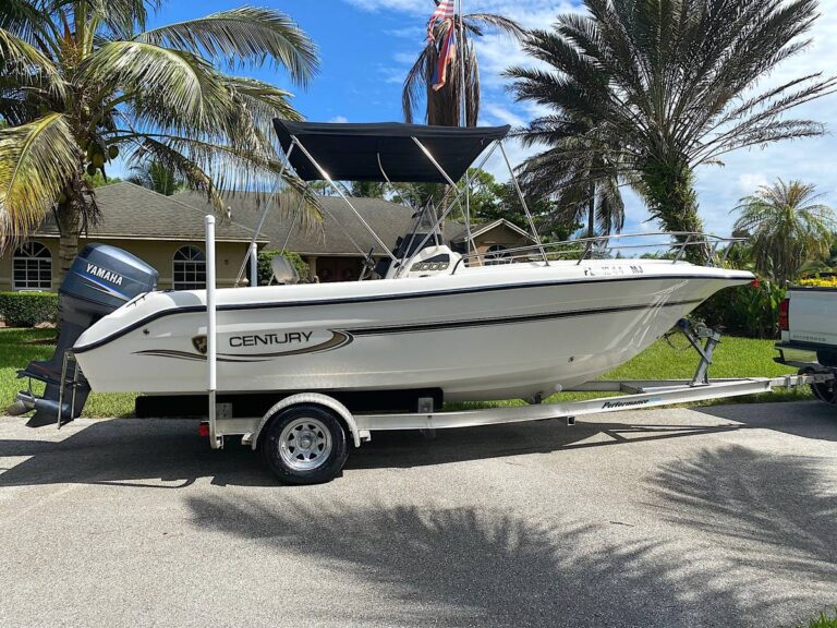 2004 CENTURY 2000 CC, Yamaha 150hp 2-stroke, 291 hrs, 20′ Center Console family fishing boat, Excellent condition, runs great, turn key boat everything works as it should, includes Bimini top, Garmin GPS, VHF Ship to shore radio, Marine sound system, live well, LED lights, Anchor, fenders, life vests, flares, Optional Performance aluminum boat trailer shown in pictures is available for additional $1800 if needed $13,800 or $15,600 with Trailer.