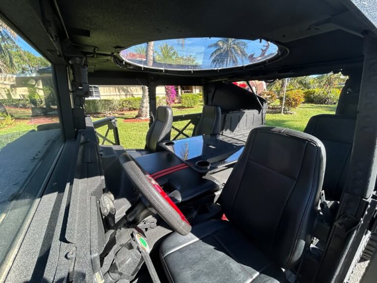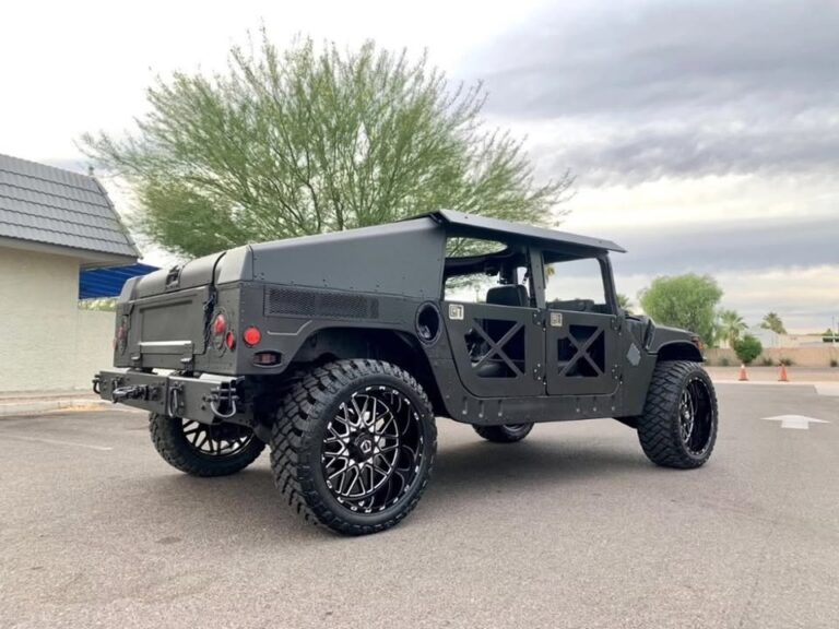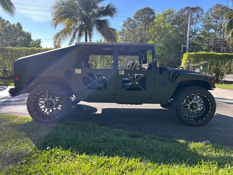 2005 Humvee M1114 Turbo Diesel Hummer H-1 only 1,445 miles, Air Condition, turn key truck everything works, ready for fun, lots of extras, hard top slantback, 6.5 L Turbo Diesel v-8 Engine, overdrive automatic transmission, black kevlar coated exterior, custom aluminum removable X-Doors, new sunroof, new custom console table w/ cupholders, new seats, new led headlights, 24″ custom wheels and tires, many new parts, excellent condition, comes with clean Arizona Title. $39,500