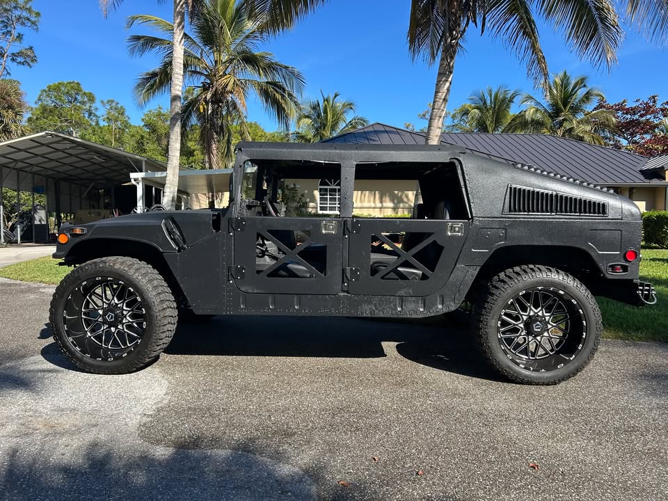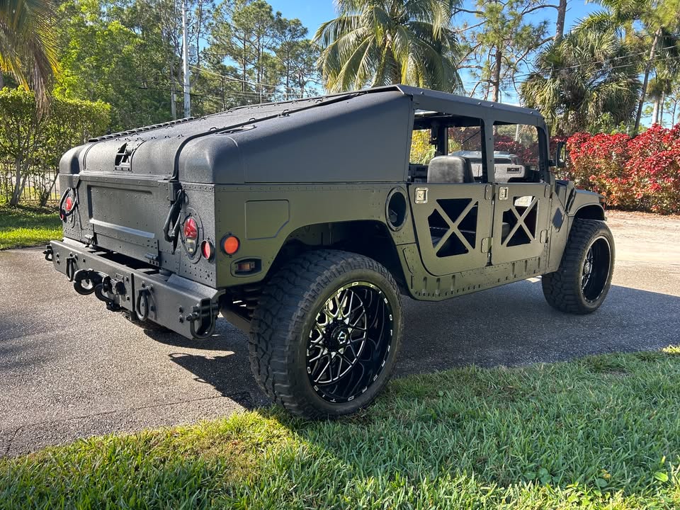 2005 Humvee M1114 Turbo Diesel Hummer H-1 only 1,445 miles, Air Condition, turn key truck everything works, ready for fun, lots of extras, hard top slantback, 6.5 L Turbo Diesel v-8 Engine, overdrive automatic transmission, black kevlar coated exterior, custom aluminum removable X-Doors, new sunroof, new custom console table w/ cupholders, new seats, new led headlights, 24″ custom wheels and tires, many new parts, excellent condition, comes with clean Arizona Title. $39,500
