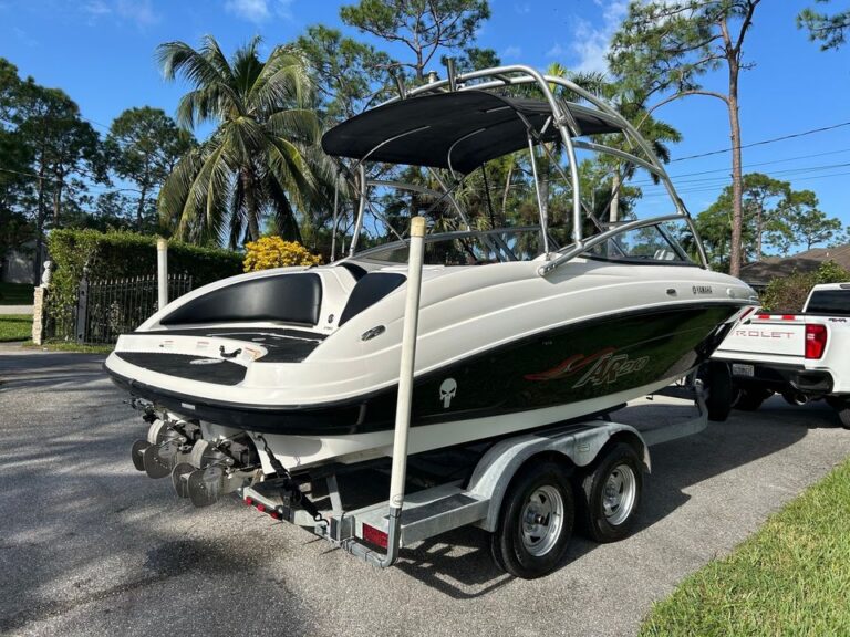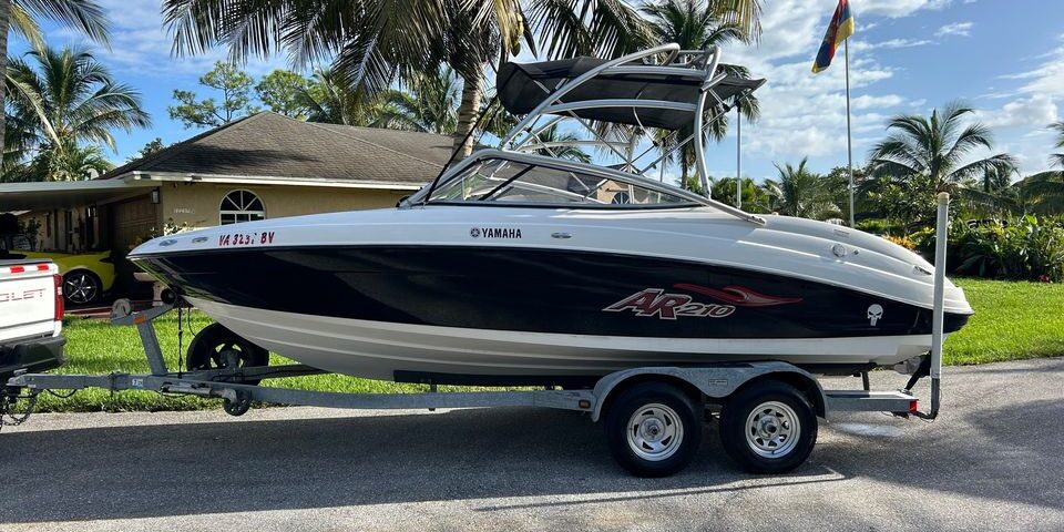 2007 YAMAHA AR210 twin jet engines, 600 hrs, great condition 21′ bow rider Jet boat, starts and runs great, everything works as it should, includes wake tower w/bimini top, Bluetooth marine sound system, Garmin GPS, two batteries, onboard battery charger, full canvas cover, LED courtesy lights, anchor, fenders, life vests, flares, fire extinguisher, Optional tandem boat trailer shown in pictures is available for additional $1,800 if needed $12,800 or $14,600 with Trailer.