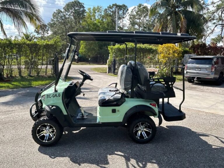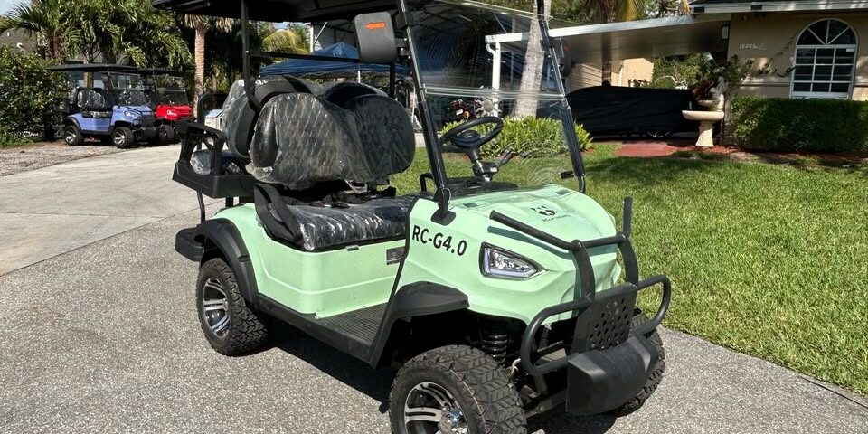 2025 MachPro RC-G4.0 Electric 4-Passenger Golf Cart (NEW) Features: large intel screen radio blue tooth USB rearview camera fully loaded, LED exterior rearview mirror, Independent suspension, HD shock absorber, Four wheel disc brake, parking brake, brake assist, electric intelligent controller, 5 maintenance free batteries, built in intelligent charger, charging time 6-8 hours, top speed 25mph, 60V motor power 4KW AC motor, Carbon fiber steering wheel, LED combination front lights, combination rear taillights, turn signals, brake lights, seat belts, electric horn, folding windshield, tire size 20×10.00-12, alloy wheels, Street Legal, Brand New in Stock many colors to choose from $4900. while they last.