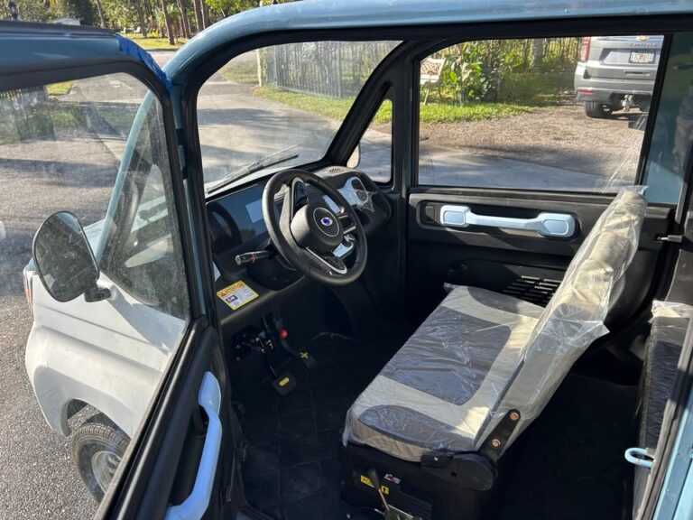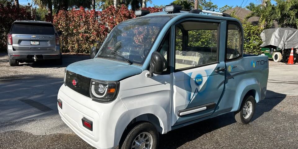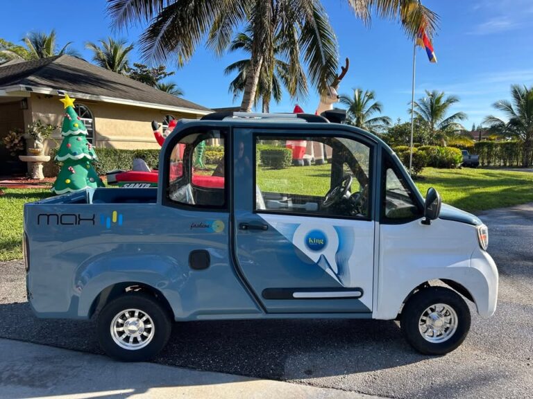 2025 MECO M-F Electric 4-Passenger Golf Cart 2D Pick Up Truck Car 60V (NEW) $5900 Features: Exterior LED lighting Rear back-up camera Digital speedometer, odometer & voltage meter Adjustable front seat Rear bench seating Floor fan blowers Roof vent w/fan cooling system In-dash radio unit w/USB Windshield wiper External charging port Intelligent battery charger Pneumatic tires Aluminum wheels Specifications: Rated Motor Voltage: 60V Motor Power: 1000W No. of Passengers: 4 Max. Speed: 25 mph Tire Size: 4.00-10