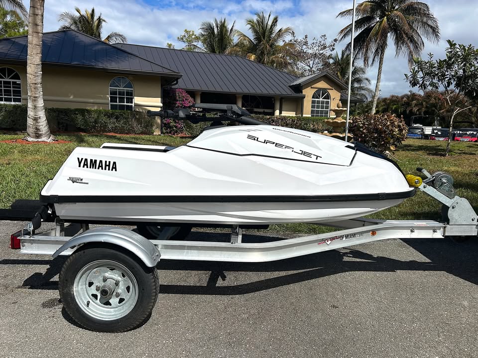 2025 (NEW) Yamaha SuperJet (0) hours, never used, 2025 (NEW) Trailer optional $1500 if needed, $8,900 or $10,400 with Trailer. Generic Type (Primary) 1-Passenger, Stand Up Engine Type 3-cylinder, 4-stroke TR-1 Yamaha Marine Engine Displacement 1049CC Fuel Type Regular Unleaded Dimensions: Length 8′, Width 2’6″, Height 2’6″ Fuel Capacity: 5 Gal Storage Capacity: 28.4 Gal Seating Capacity: 1 person Oil capacity: 3.4 L Dry Weight: 375 lbs Fuel Gauge Type: LED
